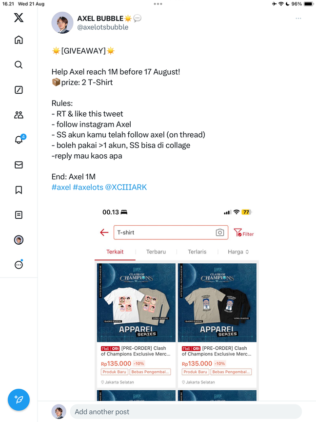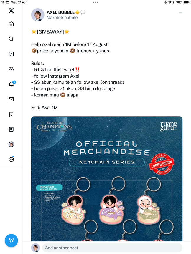 AXELOTS SEMUA YANG MEMBANTU MENYUKSESKAN project INI sehingga axel mencapai 1M followers instagram sebelum 17 agustus