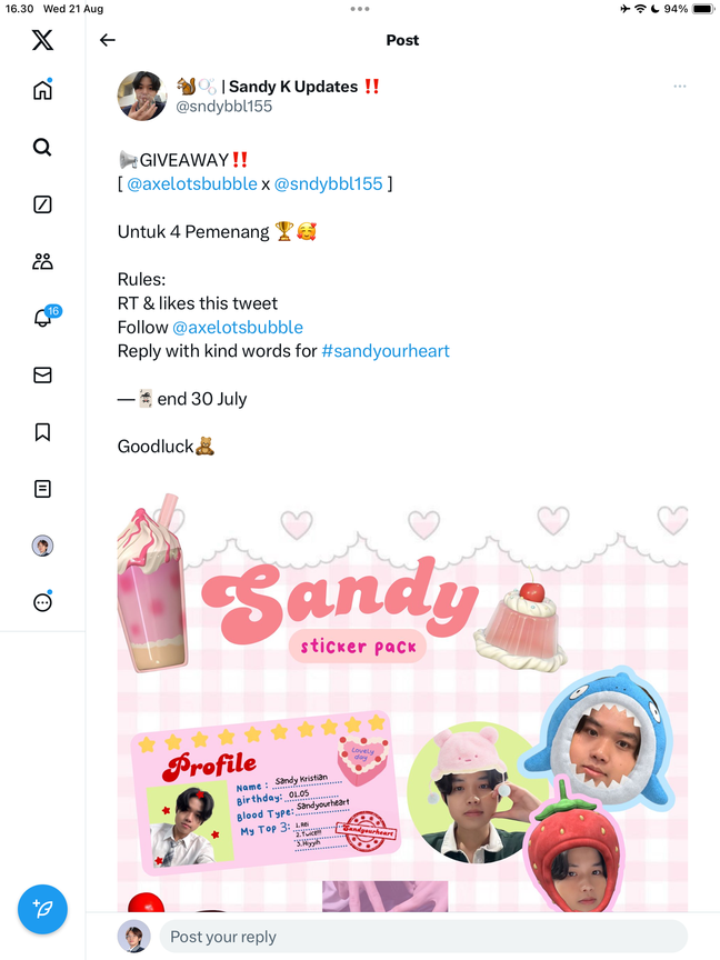 Saat muncul akun sndybbl155, kami mengajak kolaborasi giveaway dengan tujuan agar orang-orang mengetahui