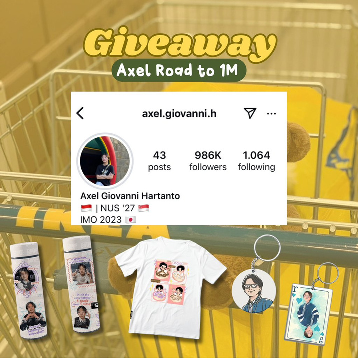 mohon maaf kepada peserta giveaway karena kami belum sempat mengumumkan pemenang dikarenakan saat axel telah mencapai 1M followers, kami masih memegang tanggungan project lain yang harus kami handle. Saat ini tim axelotsbubble & donatur dalam proses memilih pemenang yang sesuaindengan rules. Terima kasih atas pengertiannya.