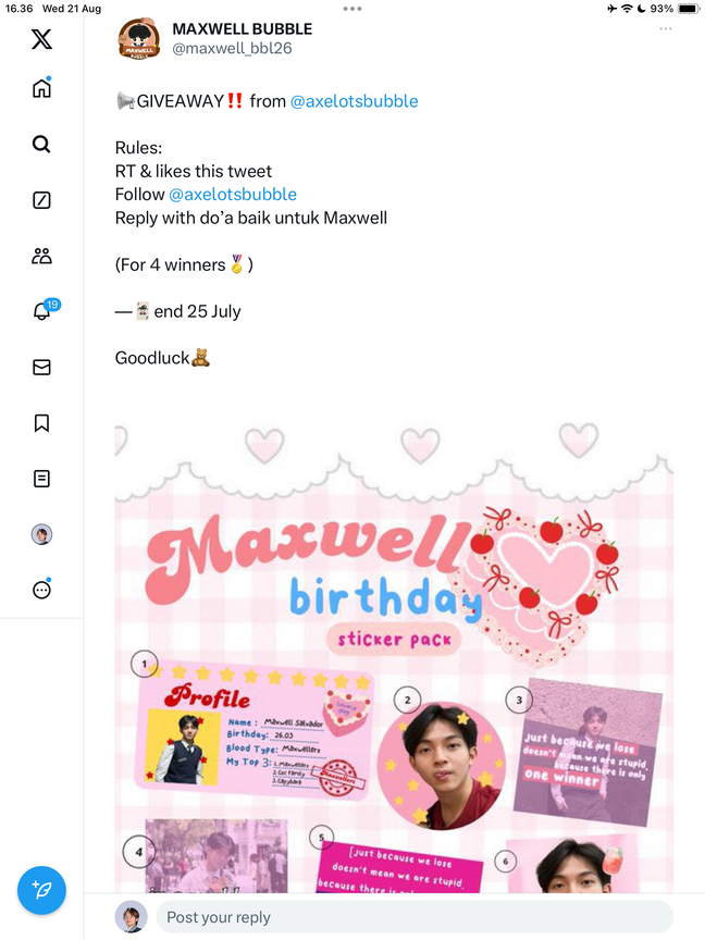 Tujuan kami berkolaborasi giveaway dengan maxwell_bbl26 yaitu agar para pendukung coc mengetahui adanya akun Axelotsbubble melalui maxwell_bbl26 (yang pada saat itu akun fanbase maxwell_bbl26 sudah memiliki banyak pengikut)